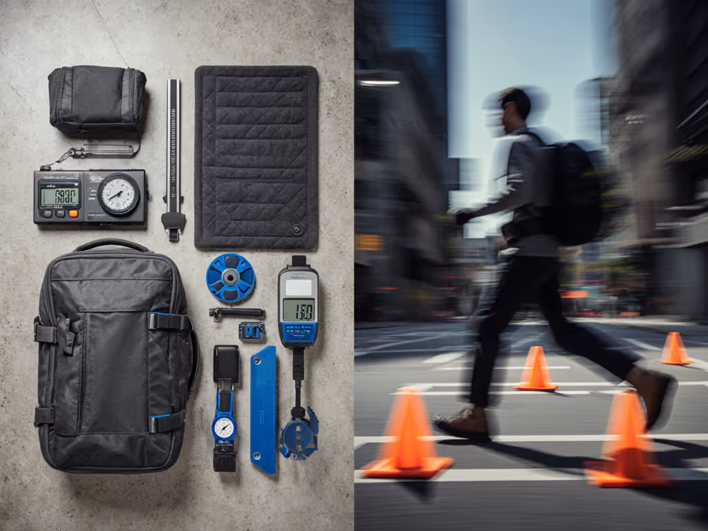 Comfort was measured using pressure-sensor mats during the full route. Speed metrics were recorded via GoPro timecode. If rain is part of your route, see our waterproof camera bag rain tests for brand-by-brand performance. All bags underwent a "corner drop" test (48" onto concrete) post-route.